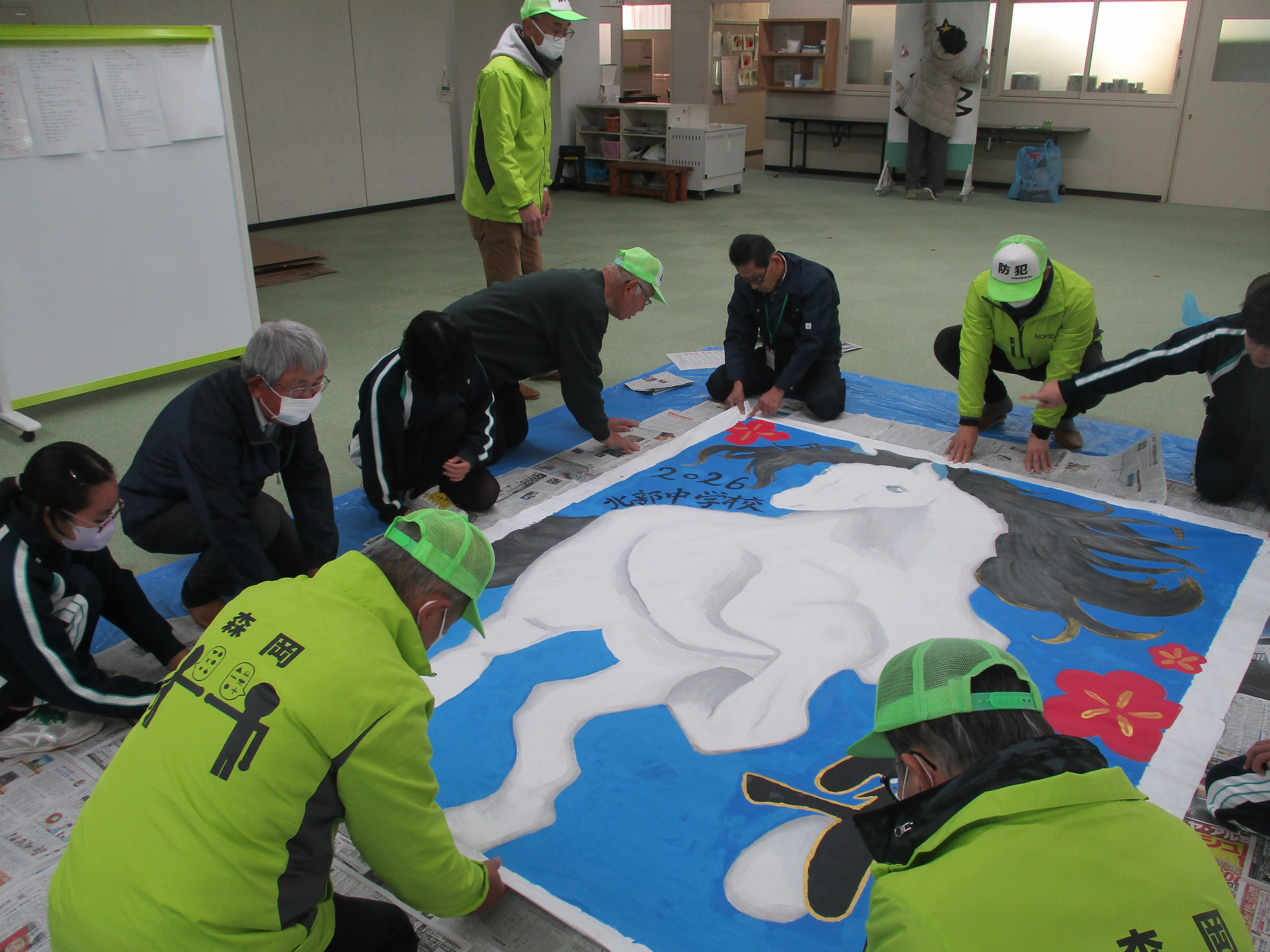 今回で36回目を迎える「森岡コミュニティ凧あげ大会」は、世代別と大凧の部、それぞれ5部門に分かれて、手作りの凧がどこまで高くあがるかを競います。